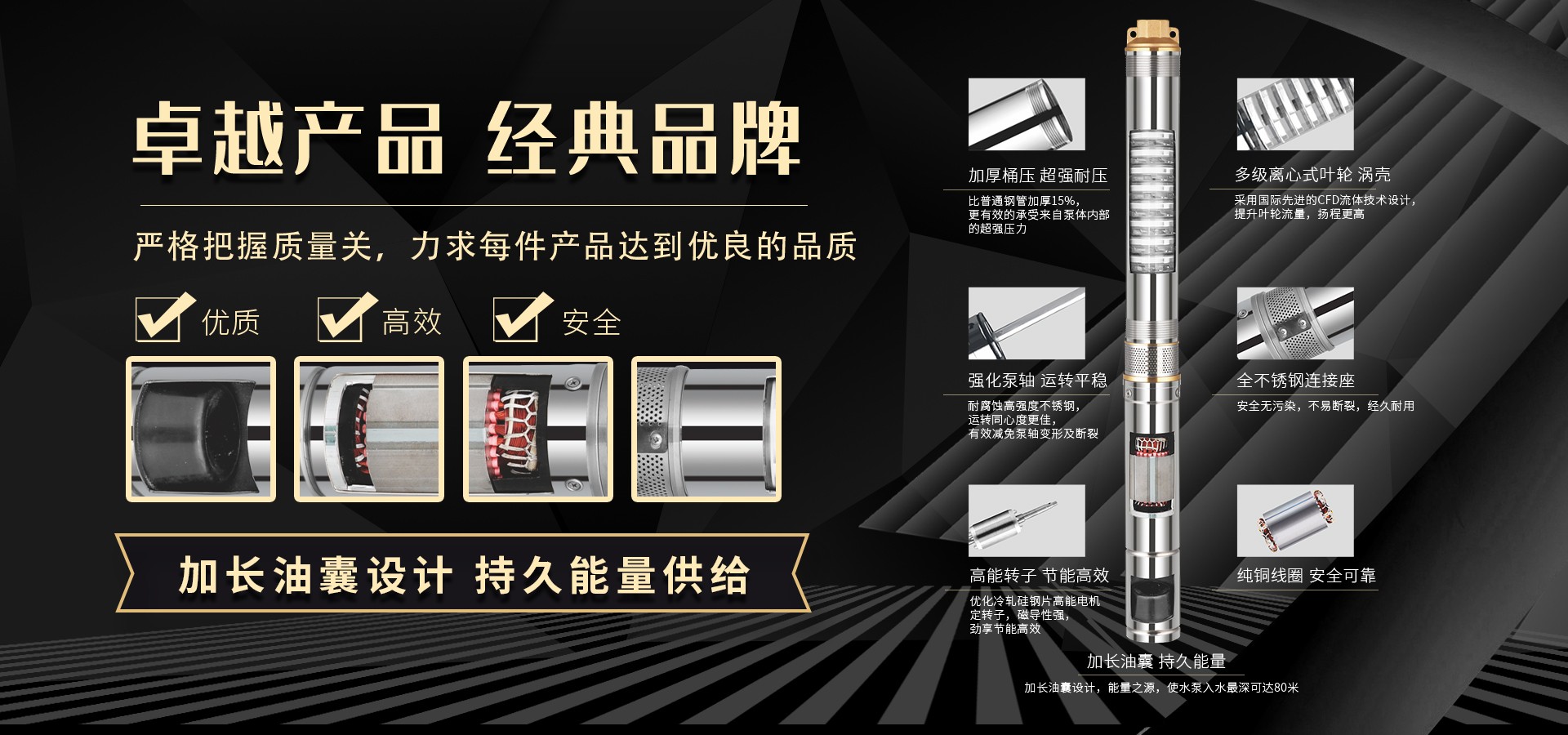 公司始終站在深井泵行業(yè)的前端位置,科研力量、產(chǎn)品和設(shè)備技術(shù)水平均達(dá)到國(guó)內(nèi)優(yōu)質(zhì)水平,公司始終堅(jiān)持走科技興企、自主創(chuàng)新的企業(yè)發(fā)展之路,產(chǎn)品不斷推陳出新,可廣泛應(yīng)用于農(nóng)業(yè)灌溉、生活用水、循環(huán)供暖、污水處理、市政供水、石油化工、冶金礦山等領(lǐng)域。